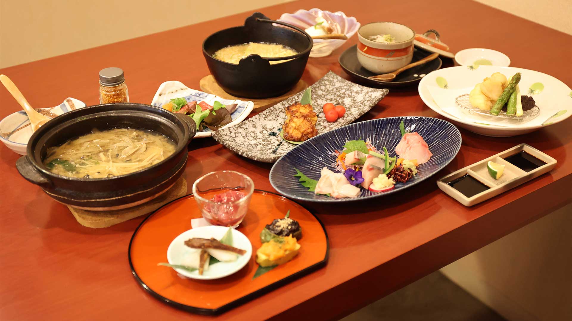 - 旬の食材を使用した逸品を店主おまかせのコース仕立てでご提供いたします。